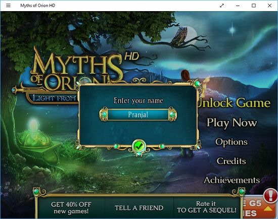 Myths Of Orion HD is a free adventure mystery game app for Windows 10 devices. The game is a brainchild of G5 Entertainment AB, and the game has stunning visuals. Overall, the game makes for a great download on devices running Windows 10, and it is also based on the click and play principle like most games of this segment. The game is replete with cut scene animations which are cutting edge and it surely packs a punch when you play it in full screen immersive mode with external speakers attached. The background music and sound effects is sufficient to keep you hooked on to the game, and talking about the graphics, they are pretty spectacular too. The game takes you through a storyline where you have stolen the power source of an evil wizard to protect the world, and run away to your sister’s home on the edge of the world, only to find her home burning up in flames. What follows is a nail biting adventure complete with hidden object levels and mini games.