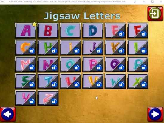 Jigsaw Letters: In this game you are shown a alphabet in the background and some pieces like in a jigsaw puzzle. You have to connect all the pieces and make the letter shown in the background. As in other games this game also has a few free levels and others are available with the paid version, this can be seen in the screenshot below.