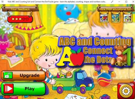 Connecting the Dots: The first game in this list, in this game you have to join the dots given on your screen using the number with each dot. All the dots when connected will form an object from the alphabet list. The alphabets pronunciation will be said out loud and then a sound is played representing the animal or thing. The connecting game screenshot is given below.