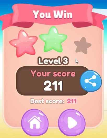 Your score is displayed along with the number of stars you earned out of three.
