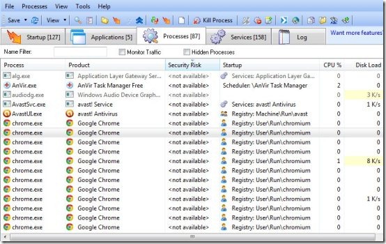Anvir Task Manager Free is another free task manager for your Windows computer. This task manager helps you to control startup items, applications, processes and services. It displays a list of startup items, applications, processes and services, so you can easily select an item from the list and do a right click for options. In this way you can disable/enable startup items, end tasks, block process and start/stop services. This task manager comes in a file size of 5.5 MB, the size is small as compared to it’s functionality. Try Anvir Task Manager for free.
