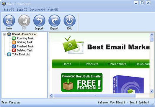 What is BB Email spider? This program is a free application that allows users to collect and extract emails from various websites across the Internet. All the user needs to do is enter keywords or URLS or provide a website address and let BBmail Email Spider do the rest. The program will scan or crawl through the pages of a website collecting all the email addresses it can find.