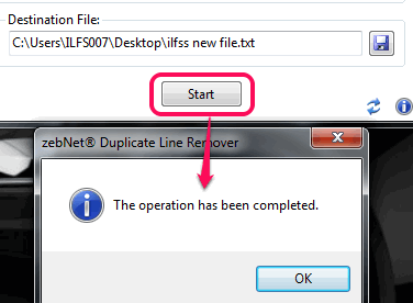 Step 3: Tap the Start button. It will only take a couple of seconds to complete the duplicate lines removal process.