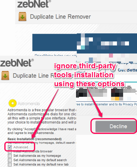 This software will be installed will the help of an installer. To download that installer, access its homepage location using the link added at the end of this tutorial. Installer is very lightweight but ad-supported. So in between the download and installation process of this duplicate file remover software, many third-party tools will be offered to you. You can skip those products using Advanced installation mode and Decline button.