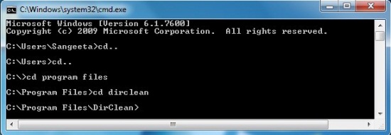 DirClean is quite easy to use. First click on the “Start” button, type “cmd”, and press “Enter” to run the command prompt. Now navigate to the location where DirClean is kept.