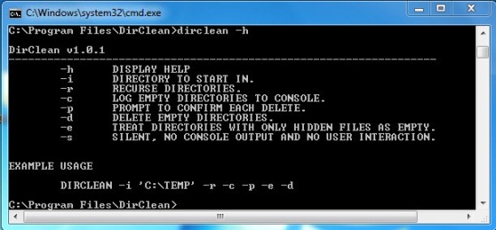DirClean works though the command prompt and is ideal for removing dead folders from your system. You just have to specify the directory you want to search for empty folders, and appropriate options to carry out the desired command. The link given at the end of this article will direct you to the download page of DirClean. After downloading and installation, you can launch this little console app through the command prompt and use it to remove empty folders from your system. Let’s see how.