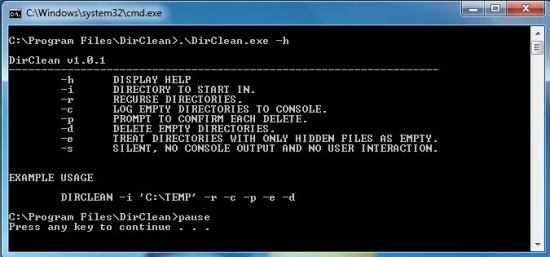 Remove Empty Folders though Command Prompt using DirClean: