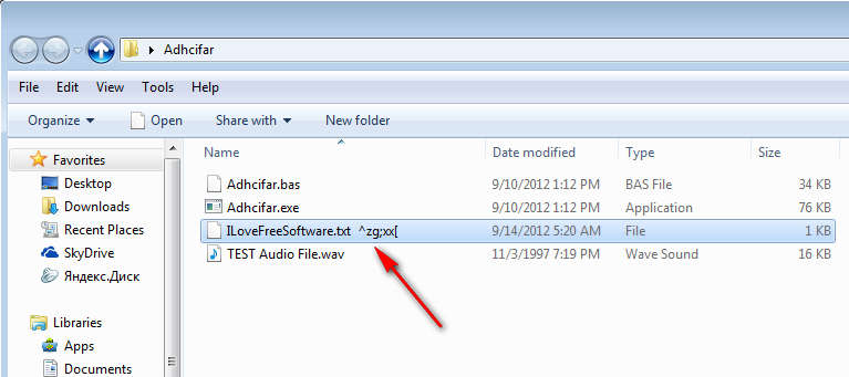 Click on the file name, that will open it up, enter password and hit Enter, that’s gonna encrypt the file. It should have a completely different extension from the one that it had before, see image above. To decypt the file, simply repeat the process and it will return back to normal.