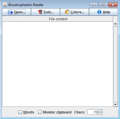 Boustrophedon Speed Reader only supports text documents, so in order to use it, you’re gonna have to create TXT files, the kind that are used by Notepad, and open them up by selecting Open from the top menu.