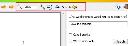 There are no menu options (like file, edit, view etc.) available, rather you will find buttons and few options to work. You can click on Open folder icon present at top left corner on its interface to open pdf file from your computer. You can manually enter a page number to jump directly or can use next page, previous page button to navigate through pages. Just next to these buttons, zoom in/zoom out options are present. Helpful to view small text or an image easily.