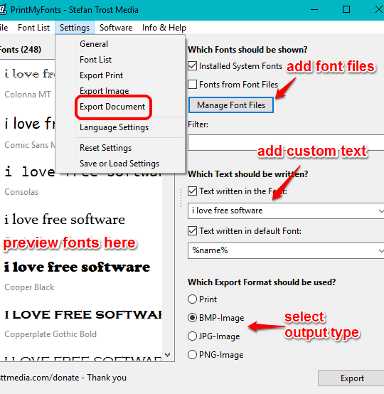 Preview Fonts and Export Them Using This Free Font Viewer Software: