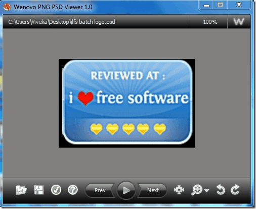 PNG PSD Viewer is anther PSD viewer that lets you view both PNG as well as PSD files. The interface of this PSD viewer is quite similar to the previous one. You can play the PSD files or PNG files as slideshow and apart from that, you can also zoom in/out or rotate the image, if required.