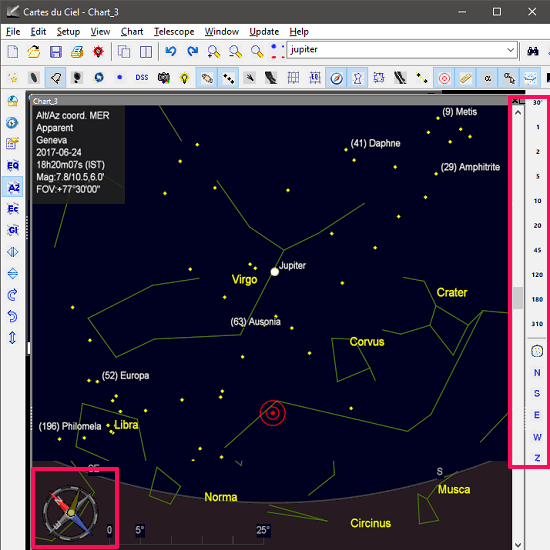 SkyChart software comes with various built-in tools & features that I have listed below: