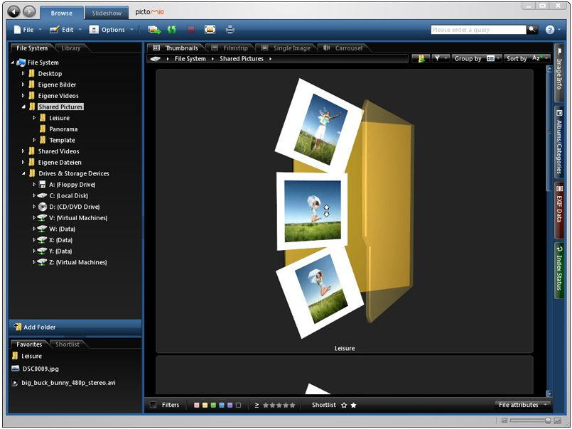 Pictomio is a free photo manager for viewing and categorizing your images and videos. The free media management software allows you to archive digital files according to your preferences, create slideshows or image carousels, manage 3D-accelerated images and upload photos to the web with great ease.