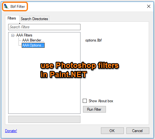 Natively, Paint.NET doesn’t support feature to apply Photoshop filters to enhance photos. However, there is a fantastic Paint.NET plugin, called Paint.NET 8bf filter plugin, which can host Adobe PhotoShop compatible filters (*.8bf files) to apply them on images. With this plugin, Paint.NET becomes an even more powerful image editor. You don’t need to use PhotoShop if you especially use it for applying the stunning filters in photos.