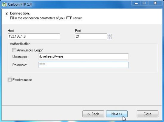 - Make Connection: Next, you need to fill the connection parameters of your FTP server.