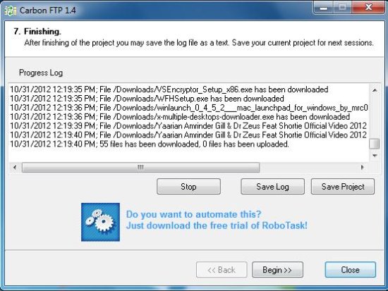 - View Status and Save Project: Finally, you can view the status of syncing files on the wizard window and save the project after synchronization finishes. You can press the “Begin” button to start a new session for the current project or new project.