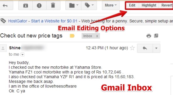 - Option to edit and highlight the content of emails.