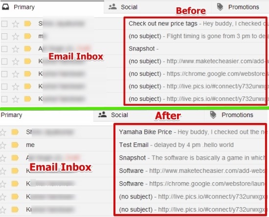 You can see below the screenshot that I have posted from my Gmail account. I have changed the subject and the content of first few received emails for better viewing.