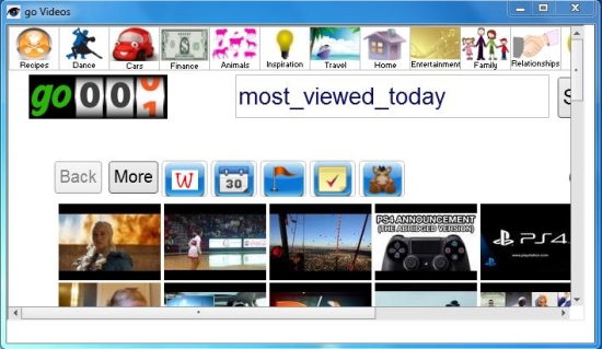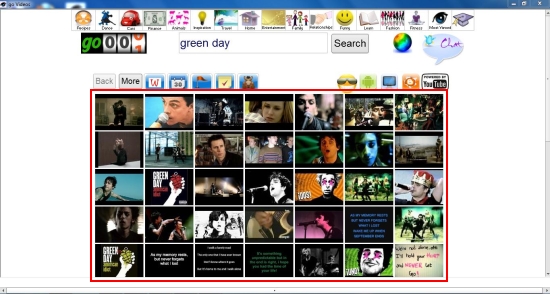 When you launch the app, the interface starts popping up icons for different categories and gadgets that it provides to browse YouTube videos. You can choose any category to display videos that falls into it. Amazingly, this free YouTube video player displays 35 videos on its first result page, and fetch up more results in the row in single click.