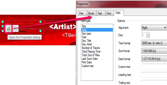 At the left side, a toolbox will be available that will help you to add text, text box, rectangle, circle, image to your CD cover or booklet. Any tool inserted by you can be moved to any area of CD cover. Moreover, you can even access any selected object’s properties, and can change them according to your wish. For example, if you wish to change text properties, select the text, and place mouse cursor to access its properties. After this, you will be able to set font style, color, etc. for inserted text.