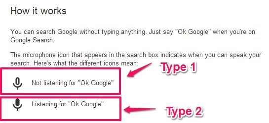 There are two types of icons that appear on the search bar (shown in the screenshot below), after you have added this Google voice search extension. The first type of icon in the below screenshot signifies that instead of saying OK Google, you have to click on that icon and then speak. Whereas, if the second type of icon appears, you just have to say OK Google and speak what you want to search. This can be controlled in the settings menu.