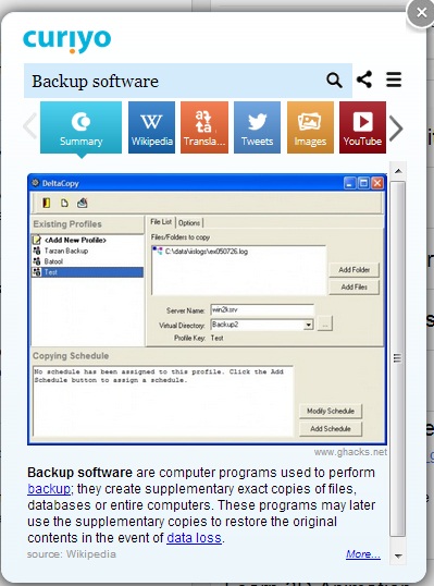 Curiyo is a simple and good addon for Chrome, Firefox, Safari and Internet Explorer and is truly Cross-Platform. Whether you’re using Windows, Linux or Mac, you can use this wonderful addon to make your search a hundred times easier. You can say goodbye to a hundred tabs open (not literally; maybe some multiple of 10). Information is brought to you from trusted and reliable source so you don’t have to open links to confirm if that’s what you’re actually looking for and legitimate or some worked up SEO magic that brought those irrelevant pages to Google’s Search Result page.