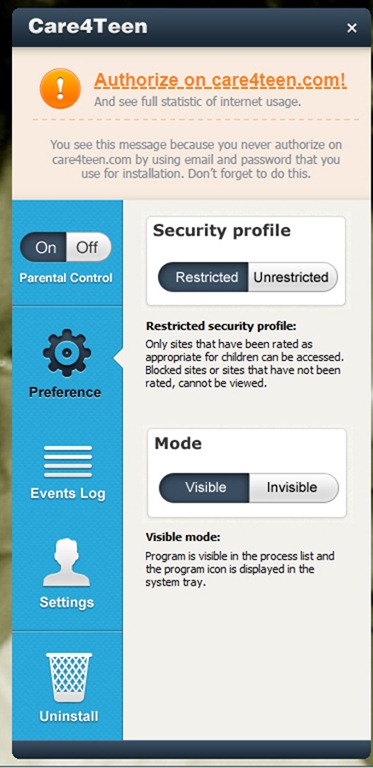 The Care4Teen download is quite small because most of the program resides on the Care4Teen servers. Installation and setup is quick and easy. Prior to downloading the program, you’ll be required to create an account with a username and password. This process is easy and straightforward.