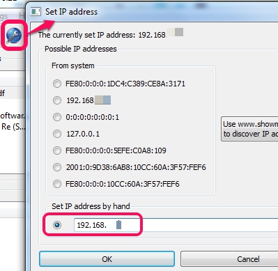 One of the important thing to share files is that you need to set IP address of your PC. And make sure that you and your friend is connected with same network. Use settings button to enter IP address from list of possible IP addresses or enter it manually. To make it work perfectly, it is good to enter IP address manually at required field. If you don’t know your IP address, then you can get it from Command prompt window by typing ‘ipconfig‘ and pressing enter.