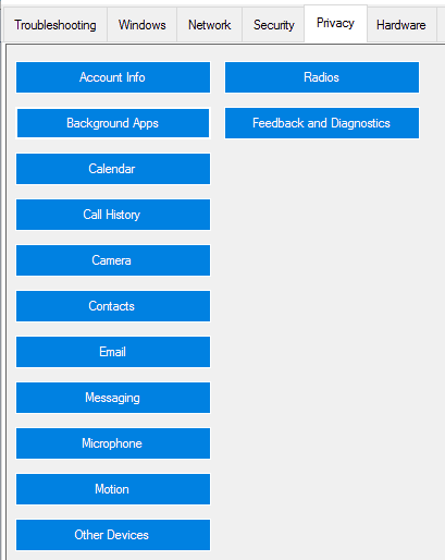 - Privacy tab: This tab is mainly helpful when you are using Windows 10. It is so because this tab helps to access Camera settings, Call history, Feedback and Diagnostics, Messaging, Email, list of Background Apps, etc.