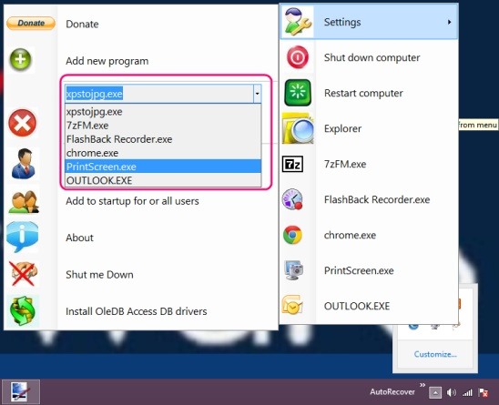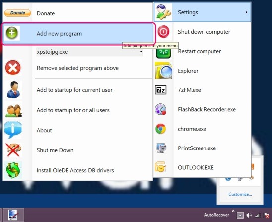Downloading and installing this System Tray Customizer, is easy and takes just a few minutes. The download link is given at the end of this article. In Windows 8 PC, after installing it, run it once to add RightClick icon in the system tray. Once, it gets added in the tray, then it’s all about adding new programs exe. to it’s list, launching them, or restarting/shutting your PC, and finally, deleting unnecessary ones. And, all these, you can do by just simple clicks. I liked the fact that this little software, makes it so easy to run almost any program installed in your PC. It does cuts the long process of opening Start Menu, and then tracking down the program from a long list of programs in the menu. And also, in Windows 8, it cuts the manual labor of going back to Start Screen and finding the program, again and again, every time you need to run a new program.