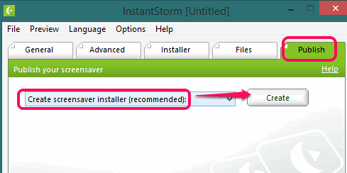 Step 5: This is the last step in which you need to select screensaver installer option or standalone screensaver file. Use first option and tap on Create button. After this, you will be prompted to select destination location to save your screensaver.