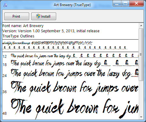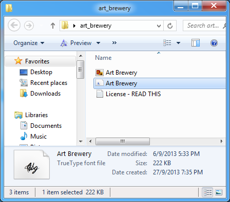Step 2: I downloaded the Art Brewery font from dafont, and as you can see below, I ended up with a file which looks like the below screenshot.