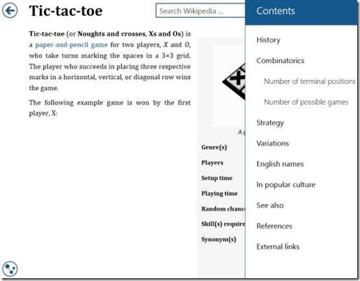 Bing Wikipedia Browser is one of the best apps for Windows 8 to search Wikipedia articles. This app combines the contents of Wikipedia with the tools of Bing. The different tools like Share page and Read in another language makes the app more useful. I personally find this app to very interesting and quite useful for me. If you are looking for an app for your Windows 8 to read Wikipedia articles in a better way, then you will definitely like it.