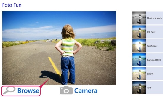 FotoFun is an easy to use app for Windows 8 that allows you to add effects to images in Windows 8. The app has a very minimalistic and simple interface for now and comes only with 6 effects for now but the developer has promised that in the next version of FotoFun more effects with be included and also the effects will be configurable by the user.