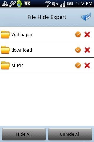 Also, file hide expert app is a very simple app in Android Market to smartly hide files and folders on Android. The app is even protected by a secure password, so that no one can access your important or confidential files and folders without your permission. You can easily hide audio, video, image or any other file from your SD card.