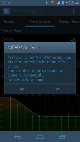 You can get Viper4Android Audio Effects from the link provided at the end of this article. The link will re-direct you to the app’s official XDA page; from there you will need to download and install the Viper4Android FX APK file to your device. Once installed simply launch the app and you will have a dialog box in front of you are seen here, Viper4Android is trying to install drives here, tap on ‘Yes’ to install the required drivers for your device.Installation and setup of Viper4Android Audio Effects