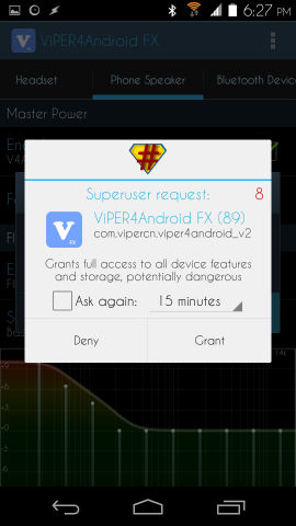 After this, the app will ask you for the root permissions, and will then reboot the device.root permissions Viper4Android Audio Effects