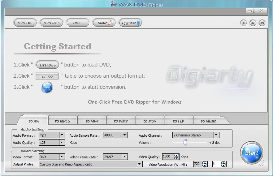 WinX DVD Ripper is an easy-to-use free DVD ripping software. It supports most of the video formats such as AVI, MP4, WMV, MOV, FLV, MPEG and can rip DVD audio to MP3 music files. It provides excellent video/audio quality.