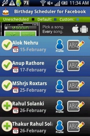 Birthday Scheduler is a free Android app to get birthday reminder of your Facebook buddies on your Android phone. This Android app lets you login with your Facebook account and imports the friend list from your Facebook account. The app lets you add the selected Facebook friends or all Facebook friends to add in the birthday list. Also, the app automatically lets you set the birthday gift which you can schedule for upcoming birthdays of your Facebook friends. The app posts the birthday gift to your friend Facebook wall on their birthday automatically. Now you don’t have to worry for checking the birthday notification on daily basis on your Android. Be the first one to wish your Facebook buddies their birthday. You can check out the full review by us on Birthday Scheduler app for Android.