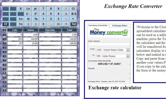 Exchange Rate app also has a smart calculator to perform basic calculations. The calculator is in the form of a spreadsheet. The spreadsheet is set up in such a way that it totals all the calculated amount automatically on your Google Chrome browser.