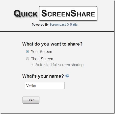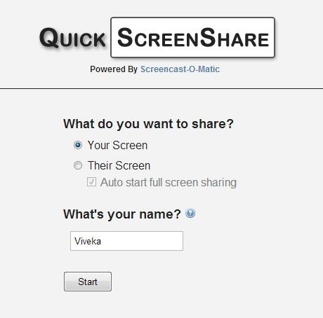 Quick Screen Share is a free screen sharing tool that lets you share screen online with your friends and colleagues and lets you view the screen of that person with whom you are screen sharing. This free screen sharing tool lets you quickly take control of each others screen so that you can access one another’s screen and continue to work without any waste of time. This software utilizes Java so it becomes necessary to have Java supported browser. You can simply go to the website and start sharing your screen after it generates a unique link which is to be send to the desired person with whom you wish to share screen online. It’s simple and does not require any registration.