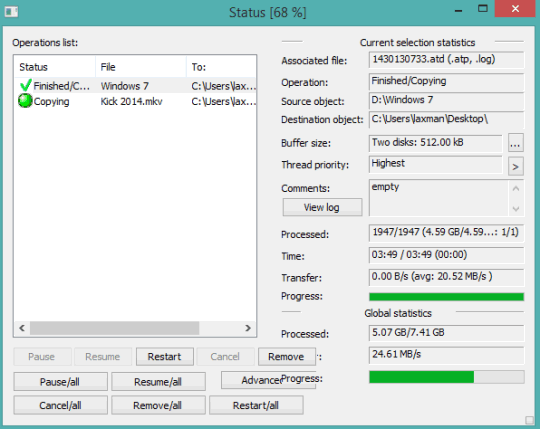 Copy Handler is another handy Teracopy alternative software in this list. It lets you manage all the copy and move operations easily. You can bulk copy files to a desired particular location and can also change destination directory in between the copy process for remaining folders/files. Its status window shows the list of files and folders, transfer speed in real-time, progress, and processed stats.