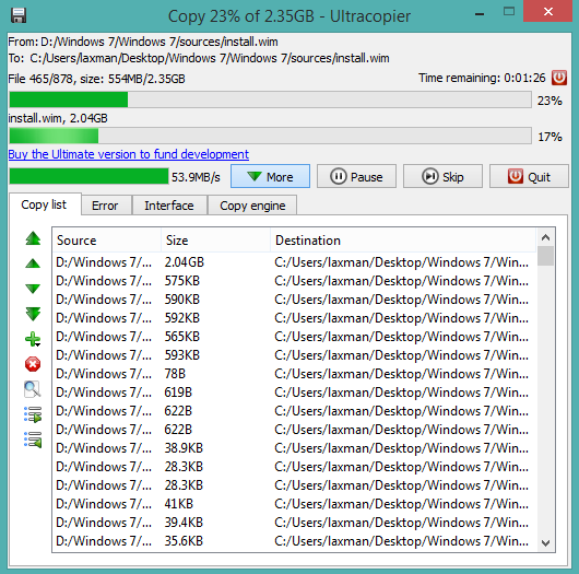 UltraCopier is a fantastic file copier software and a very good alternative to TeraCopy. It can go above 50 MB/s speed to copy files from source to destination which is really a high speed. It can also be used to transfer and move files. It automatically replaces Windows default copy and move system to take control over copy process. However, you can turn on/off this software in a single click, whenever needed.