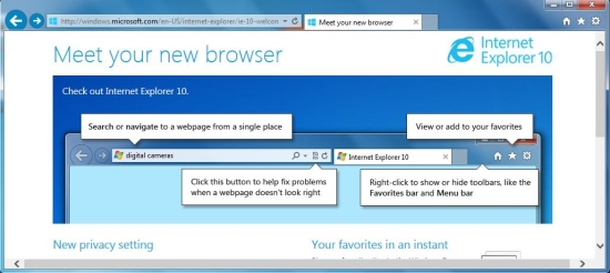 Internet Explorer 10 looks almost same in appearance like its previous versions. It comprises of the same set of tools and menus and extension, with not much change. This gives you a feel of a familiar browser, facilitating all great features upgraded to this new version.