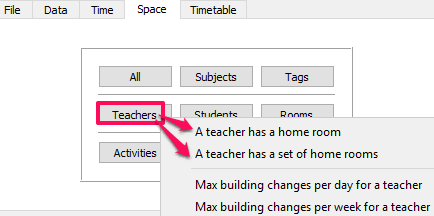 Step 4: In this step, you will specify space constraints i.e. number of rooms available for students and teachers. Switch to the “Space” section to specify these constraints, as shown below.
