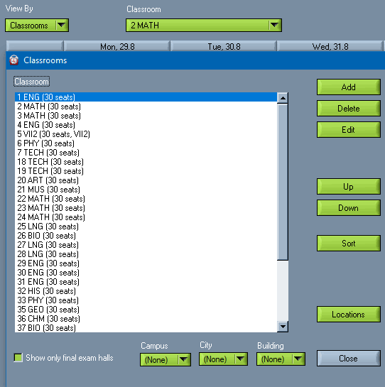 Step 2: From the “Edit” menu, choose an option to insert data of classrooms, teachers, courses, sections, etc. as shown below.