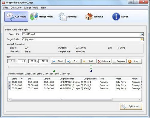 Weeny Free Audio Cutter is one of the best mp3 cutter which allows you to cut songs into small sections and simple merge these sections to make one large file. This mp3 cutter supports file formats like WAV, OGG, MP3 and WMA. This free mp3 cutter has got a simple and straight-forward user interface. This free mp3 cutter allows you to easily create awesome ringtones out of your favorite songs.