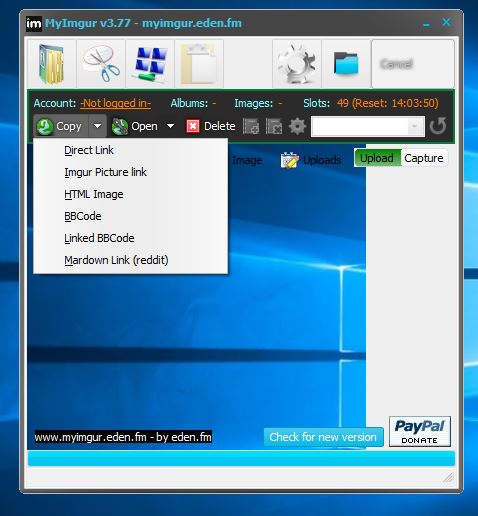 Yes, this application also supports account sign in, if you want to upload photos to your own personal albums. Small control window that the application has lets you login to your account, tweak things like image name, link copying behavior, preferred image formats and more. EasyImgur is simple and to the point.