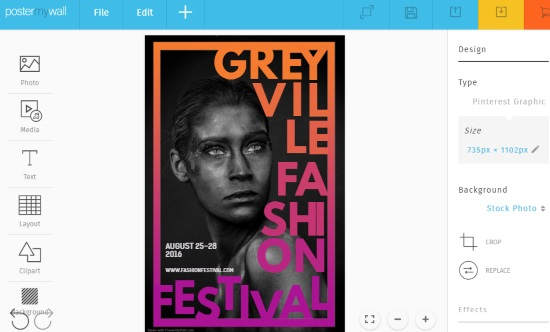 PosterMyWall is a free website where you can create eye-catching graphics. The site has customizable design templates that can be used for your Pinterest.